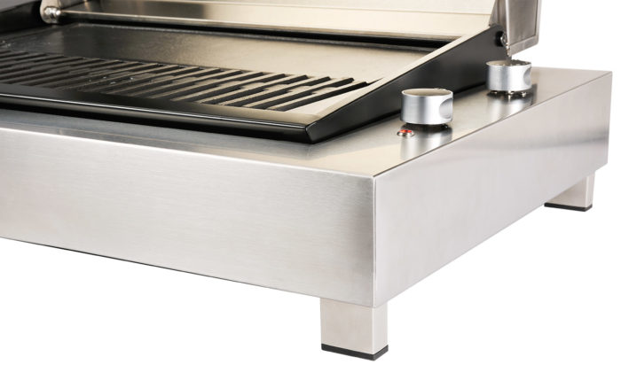 - Construction en acier inoxydable avec capot double peau, cuisson avec le couvercle vers le haut ou vers le bas.